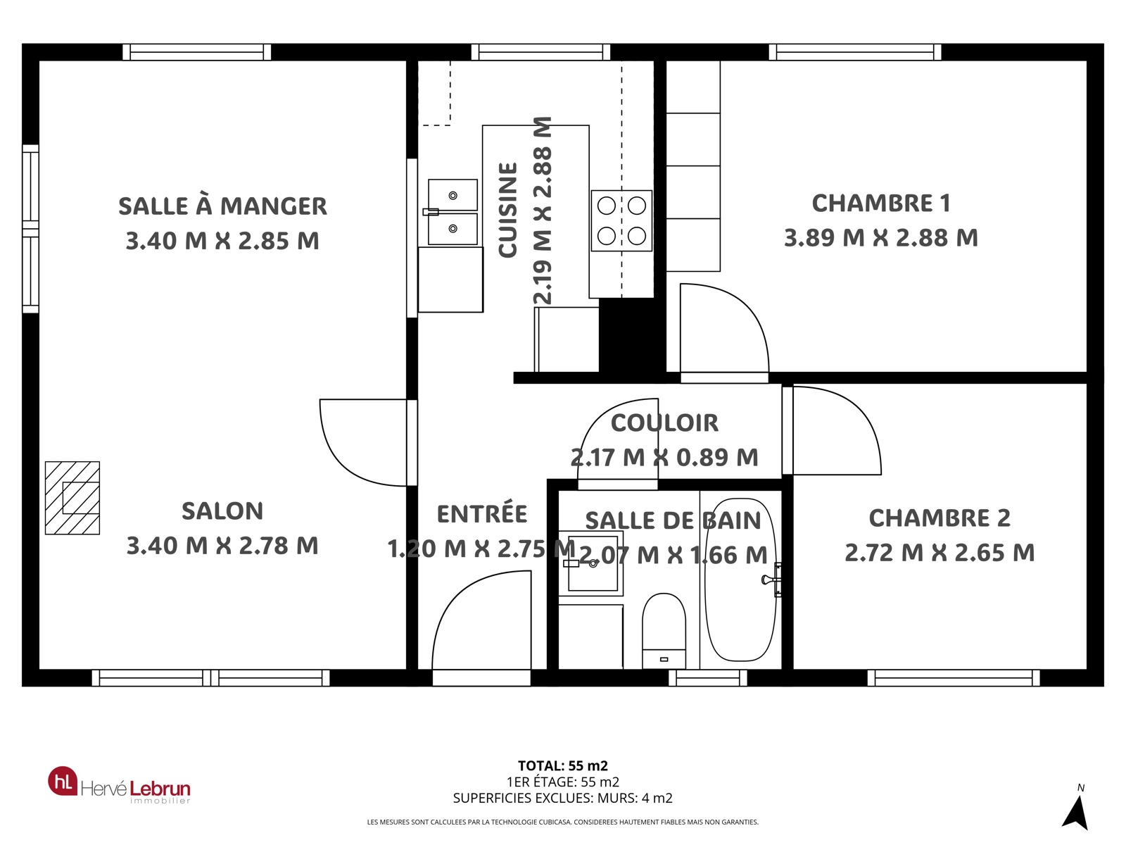- Surface habitable 60,00 m²